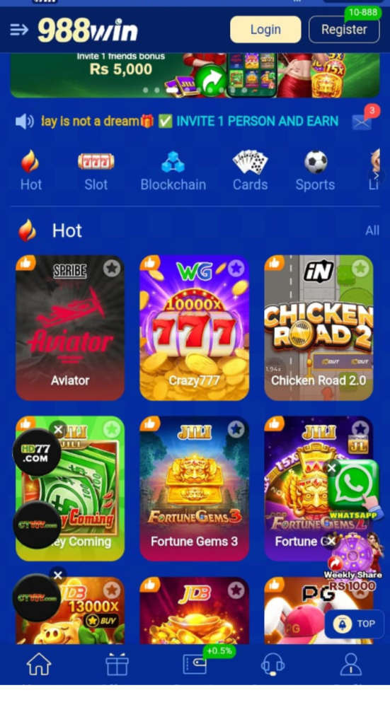 988Win is an online mobile gaming platform that allows users to play different types of casino-style games and earn rewards. It is mainly available as an Android application APK and is designed for users who enjoy entertainment along with the opportunity to win real money.